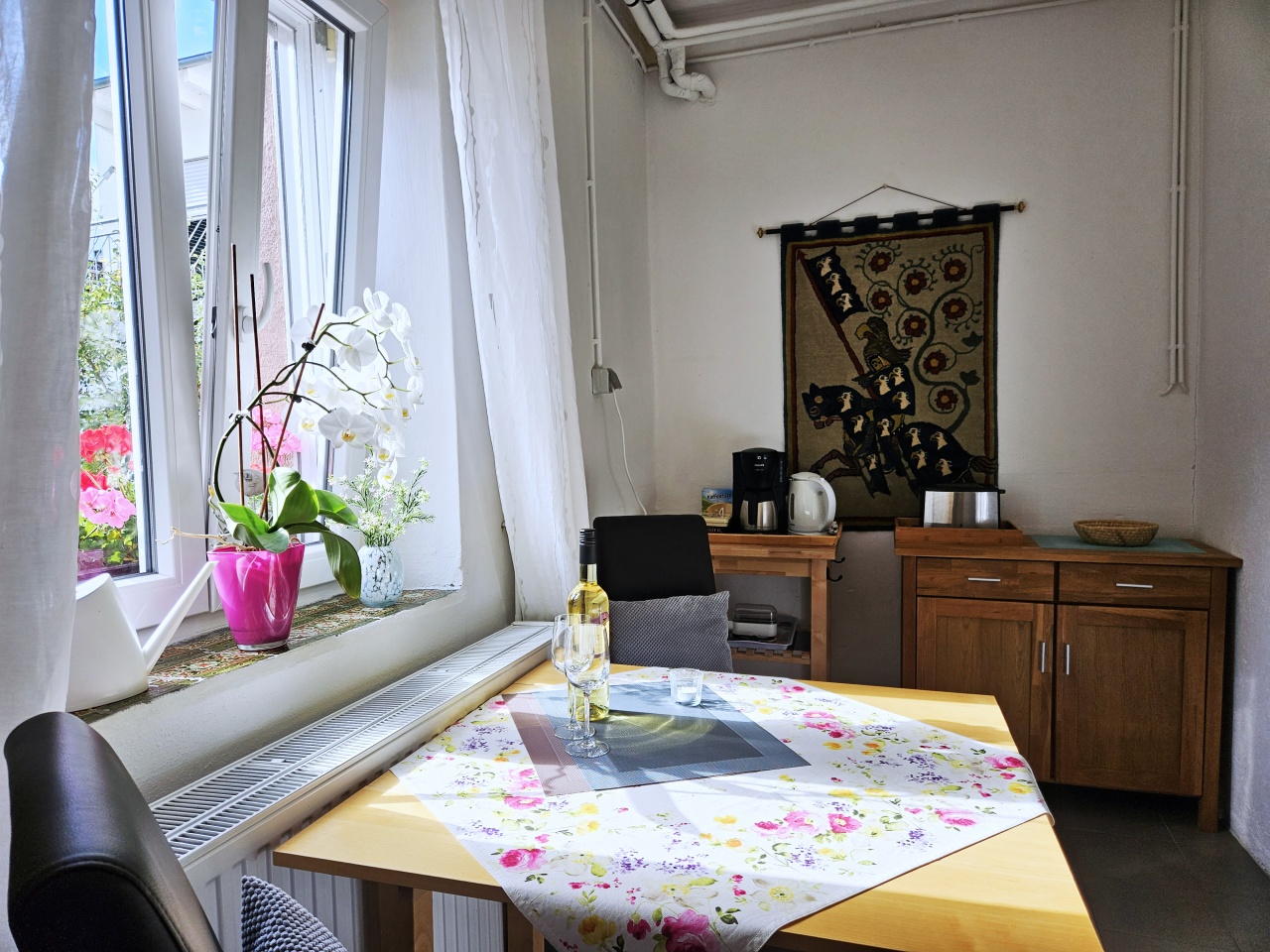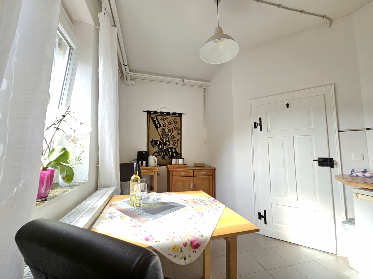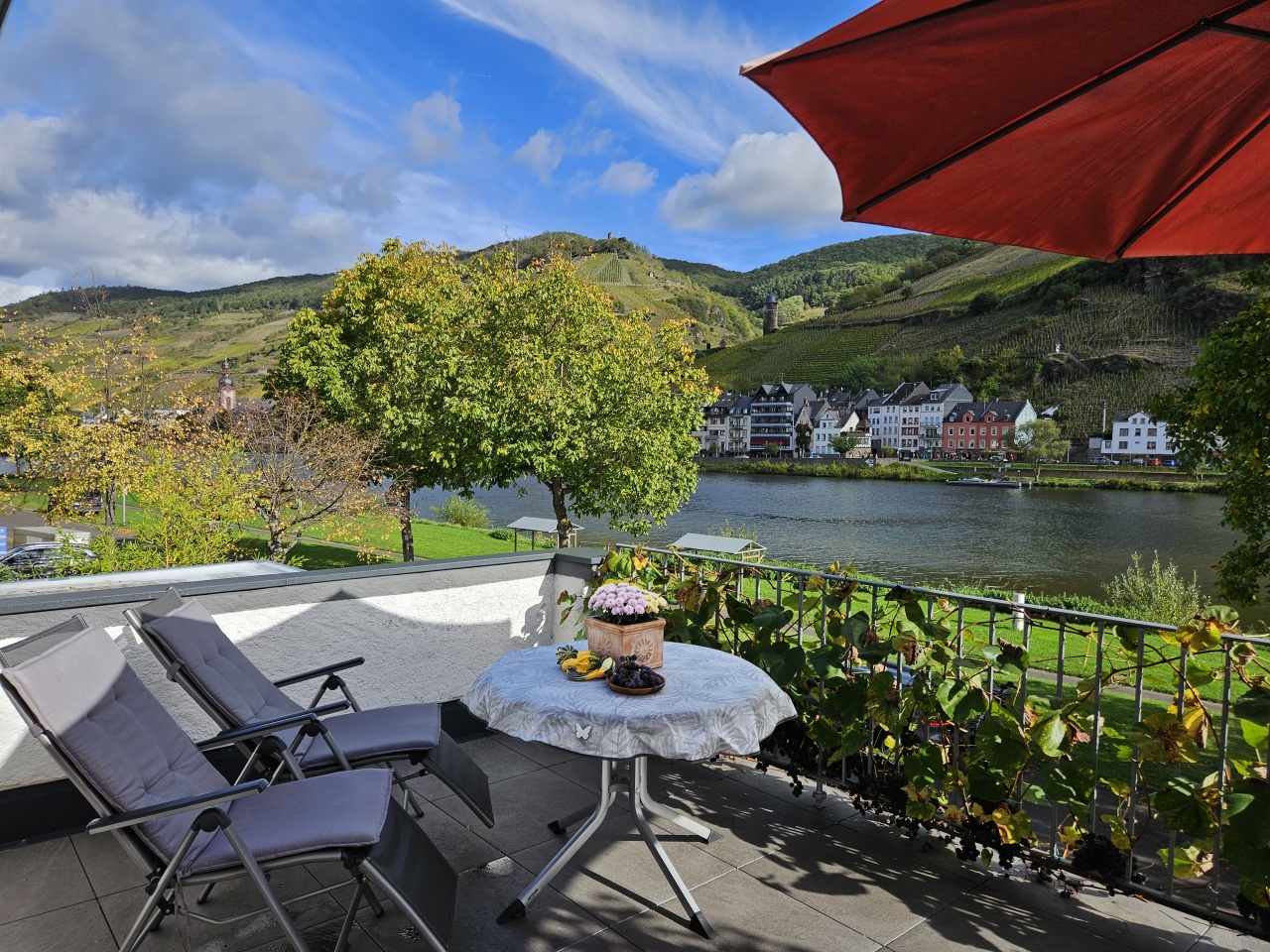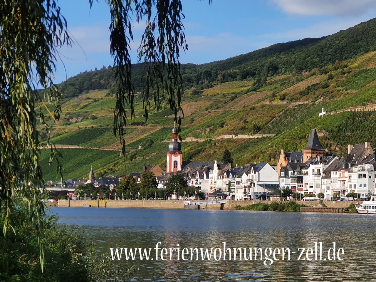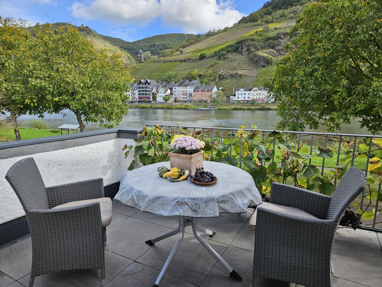 Die Fewo liegt ganz nah an der Mosel. Bis zum Moselufer sind es nur wenige Meter. Einige schöne Straußwirtschaften liegen in der Nähe. Die Altstadt Zell erreichen Sie in ca. 1 km über die Fußgängerbrücke.