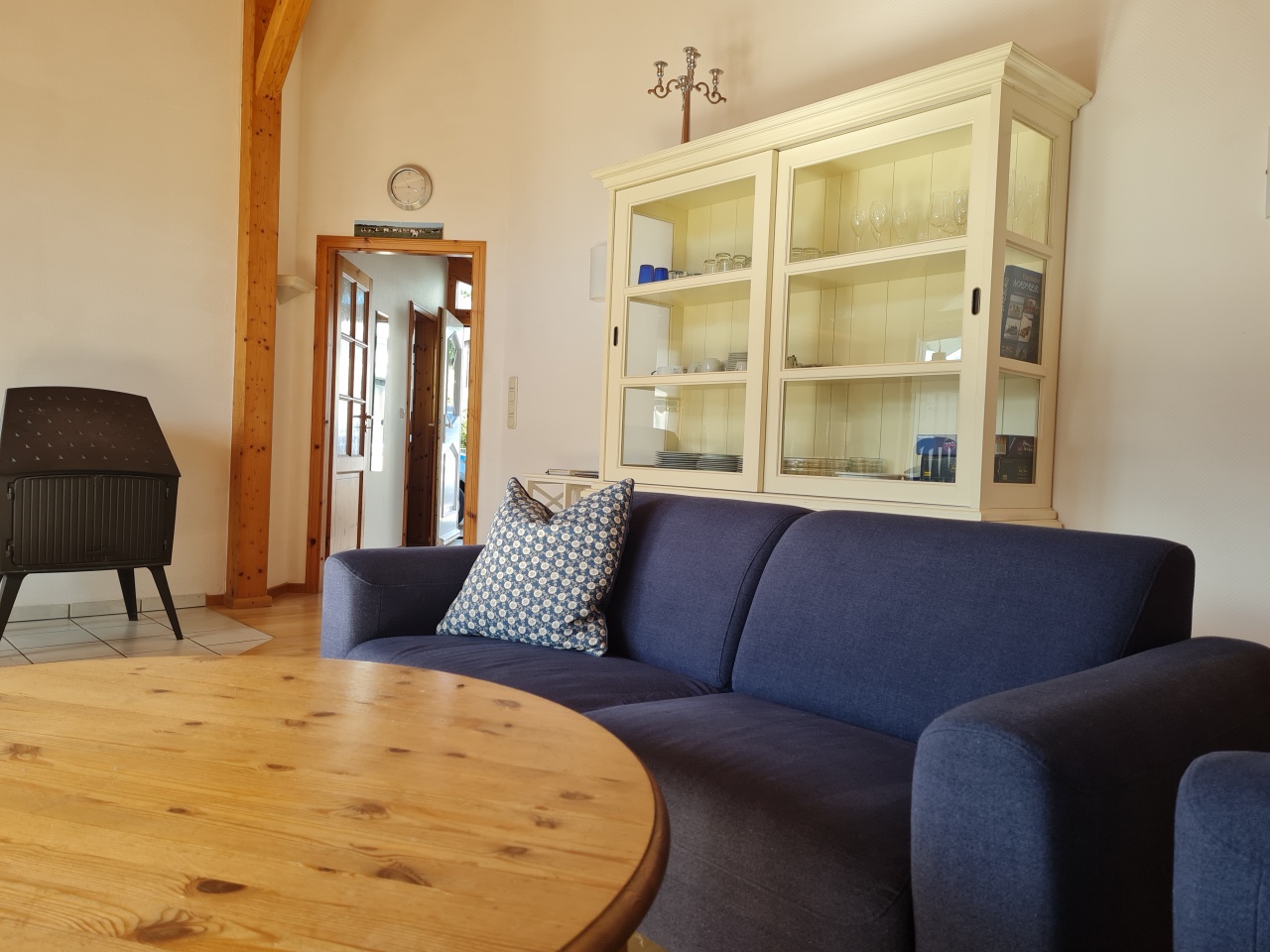 Im Wohnbereich befindet sich ebenfalls der große Essplatz und ein Kaminofen.