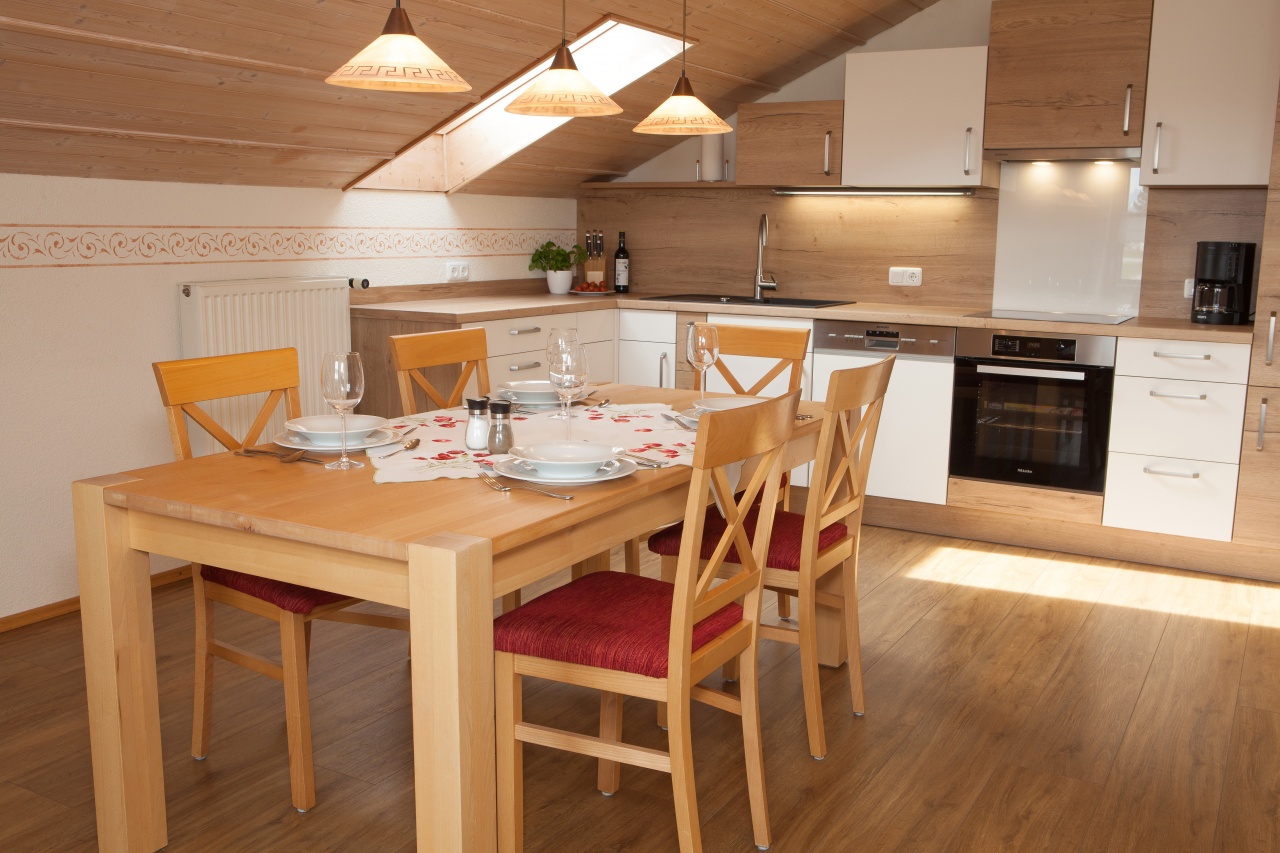Unsere Ferienwohnung Bergblick wurde komplett renoviert und komfortabel eingerichtet. Auf 95m² können Sie sich entspannen und erholen. Genießen Sie schon beim Frühstück auf dem Balkon den schönen Blick in die Allgäuer und Tiroler Berge.